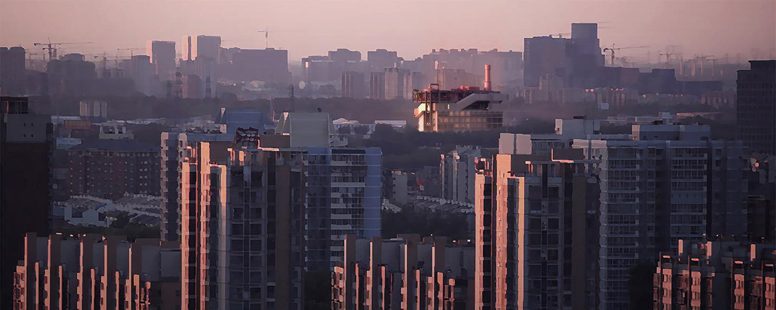 The proposal intends to present itself as a manifestation within the process of the new development and to function as a transitional model with permanent significance that hopefully could be transferred into future city designs of China. The superposition of components of the power plant above the existing structure reinforces the building’s demonstrating an expressive character, drawing attention regionally. A large steel structure was conceived to carry the mechanical components of the power plant but also to consolidate the building structure. Through inserting four “legs” which contain the vertical circulations, the metalwork manages to hold together the existing strucure and and the heavy machinery. Hovering over two normative rectangular structures, the steel structure becomes a generous canopy protecting the roof patio. From the city’s perspective, the openly displaying and framing of the power plant and its working mechanism transform the building into a giant showroom that sparks a closer dialogue between the architecture and the city.